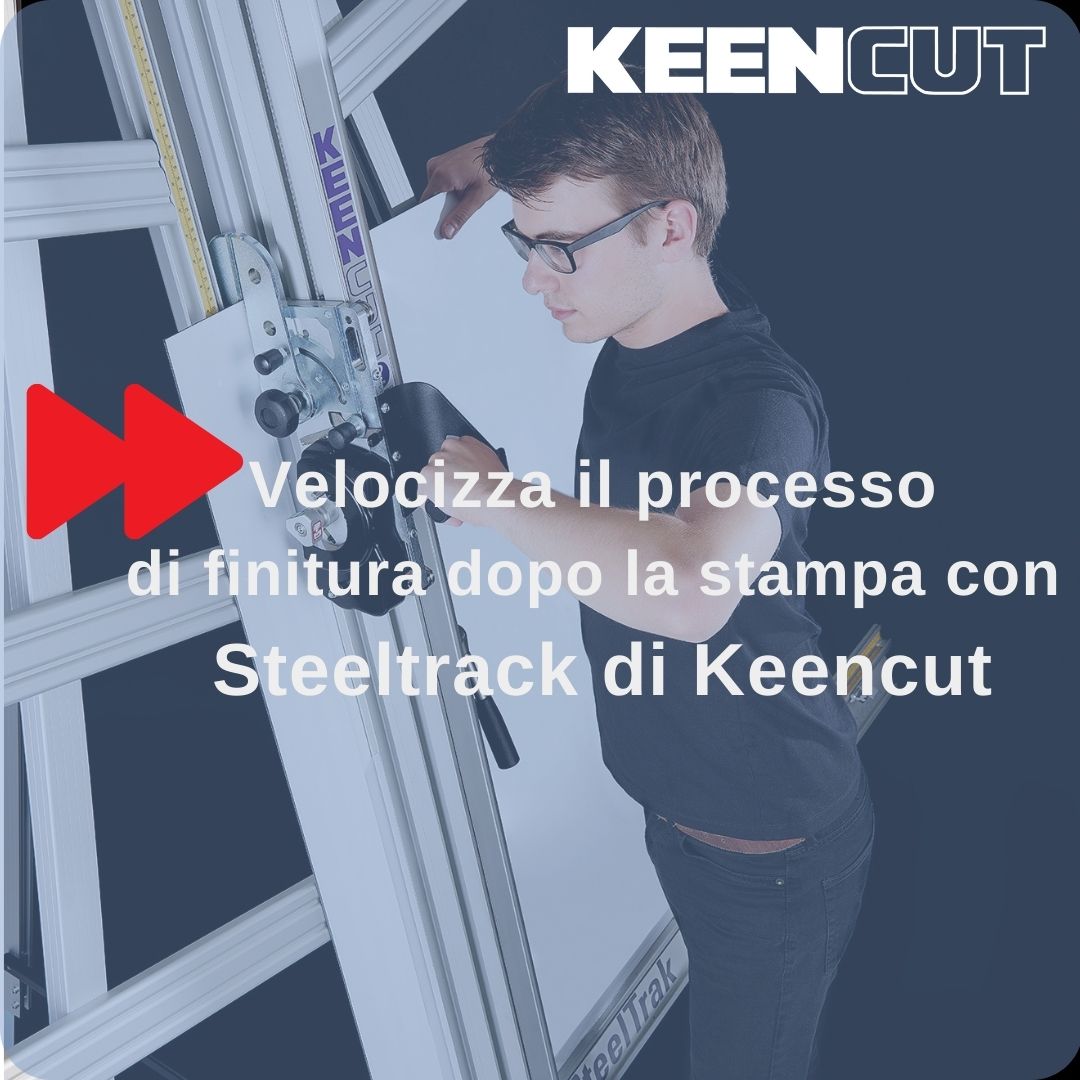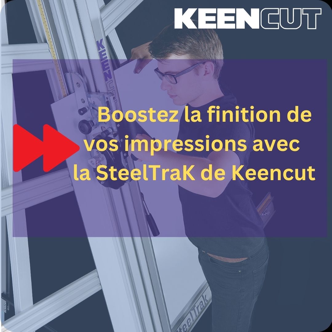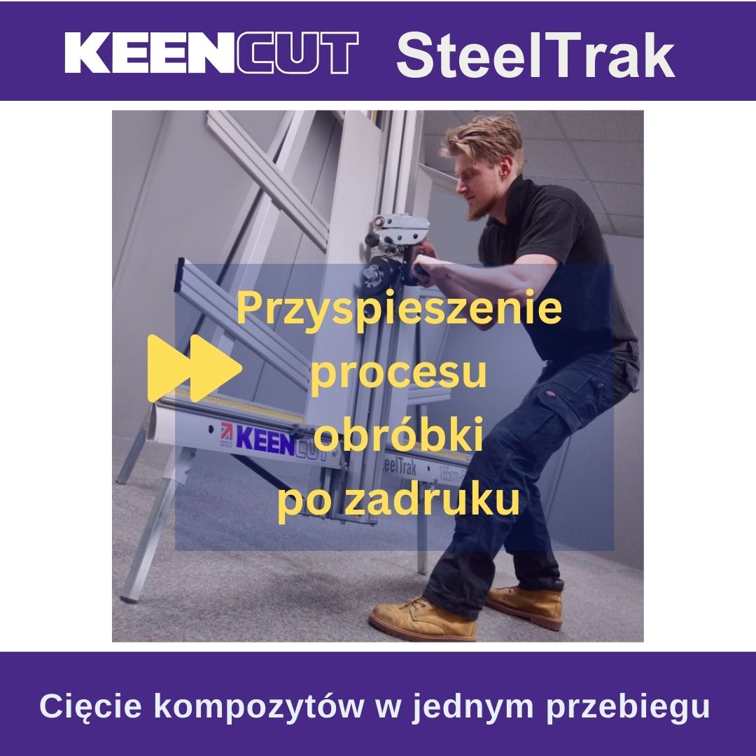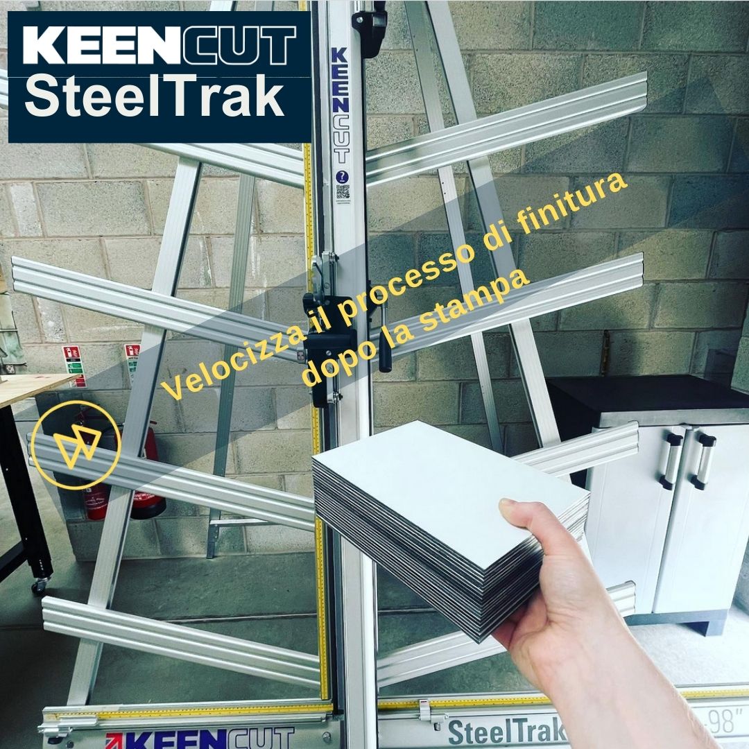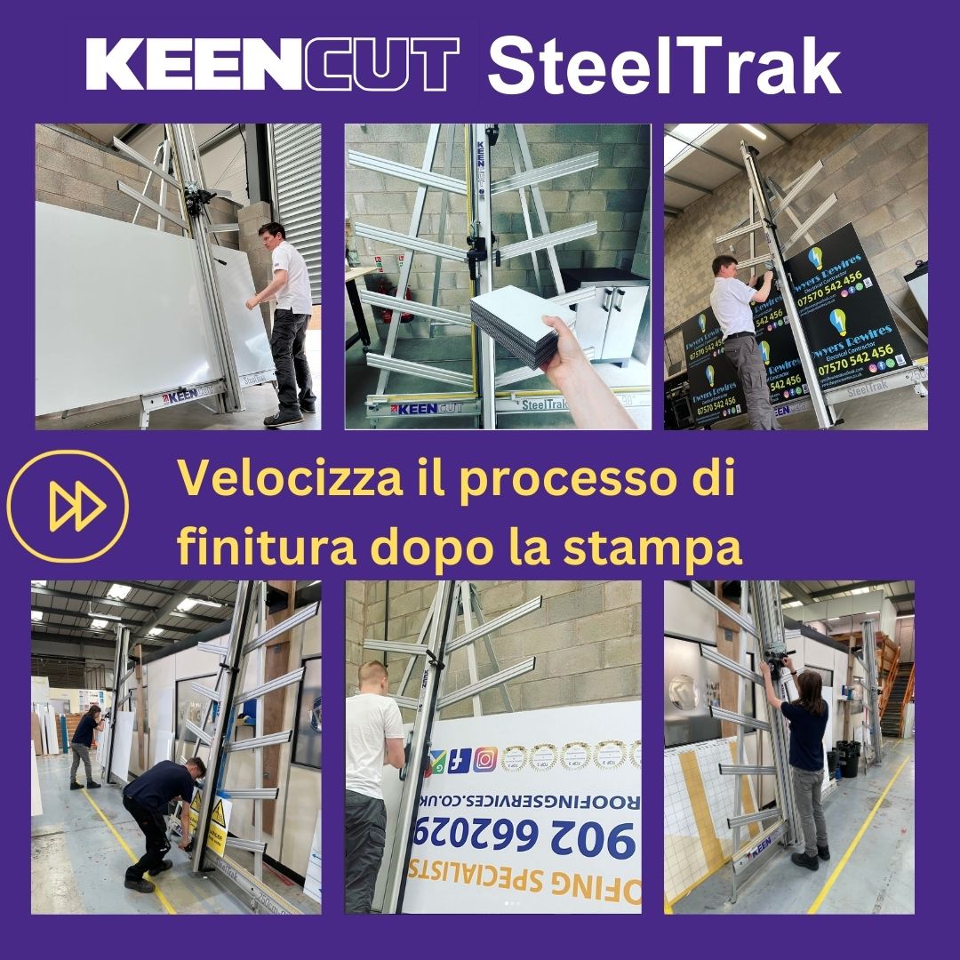SteelTrak Save money – cut your own Description: With a Keencut SteelTrak in your sign shop, you can buy larger, more cost-effective boards, apply the print to the entire board and then cut it to size.