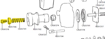 Placez le manche de la tourelle en arrière en poussant la l’axe latéral dans letrou ovale dans la tourelle, replacez le ressort,l’entretoise et la vis puisserrez avec la clé Allen (hexagonale) .