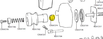 Nettoyez la grande rondelle, le palier de butée et la plaque d’appui et appliquerde la vaseline ou de la graisse au lithium sur le palier de butée et la grande rondelle uniquement, mettez de côté. Vérifiez que l’arbre est bien fixé dans le moulage.