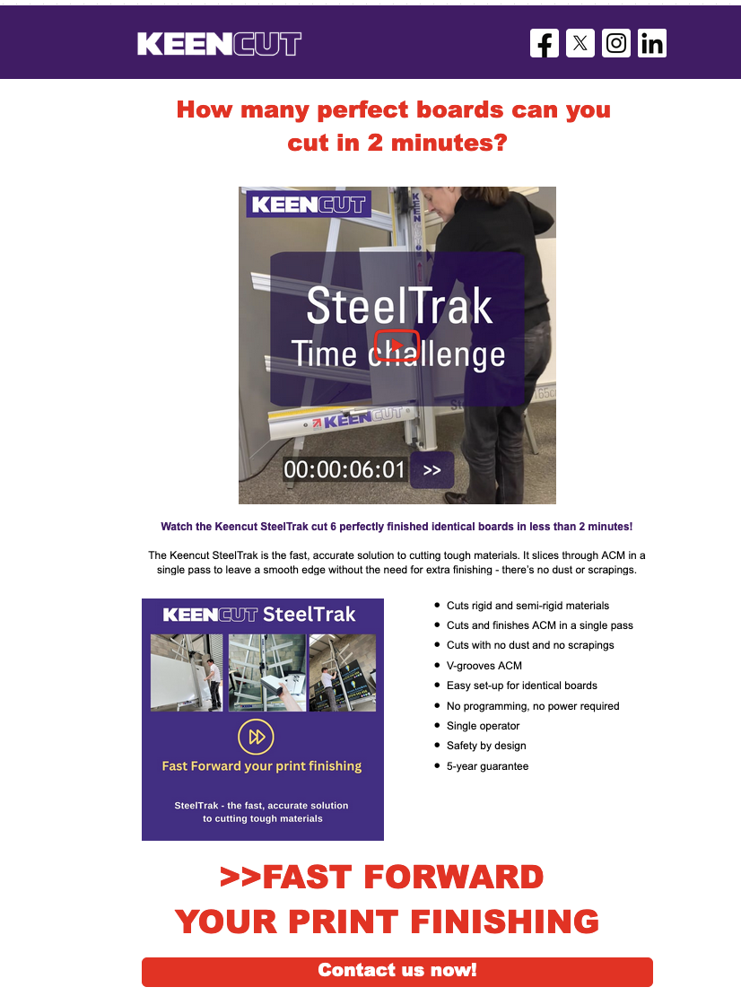 Get started with the SteelTrak Fast Forward campaign:ย post a video,ย post a card on social media,ย send an emailer, orย put a blog on your website.
