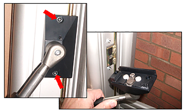 If still squeaking remove the clamp handle housing (use this guide if unsure of this procedure) and check for debris or oil on the dark grey โ€˜brake padโ€™. The brake pad can be found behind the plate as shown by the red arrows in the image. Clean if necessary with cleaning solvent on a cloth.
