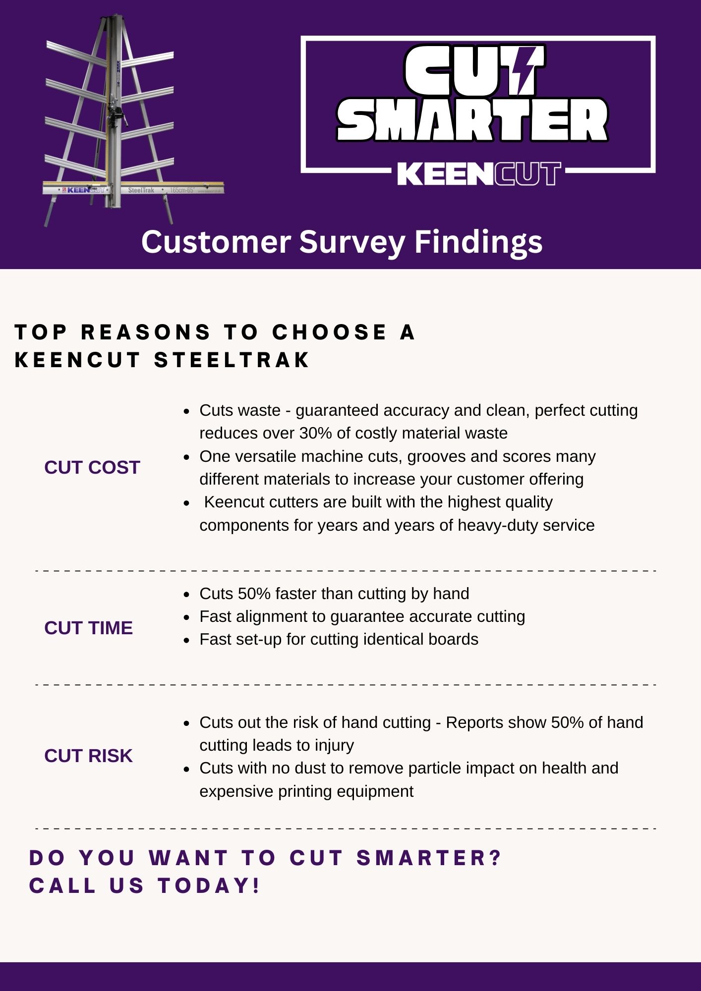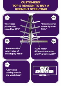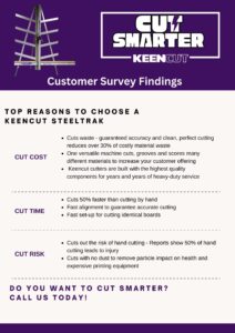 Our new sales campaign is based on our latest customer survey of SteelTrak and Evolution3 users. It takes their top comments to create a clear message – Keencut machines Cut Time – Cut Cost – Cut Risk!