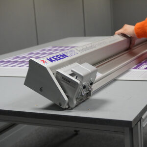 Fix independently to a bench as a guide for any Keencut bench top cutter. Precisely position your material by creating an exact square edge in front of and at 90 degrees to the cutting machine.