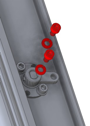 Remove two of the screws and locking washers from both pivot housing as shown (it is important it is the two shown) using a 4mm Allen (hex) key.