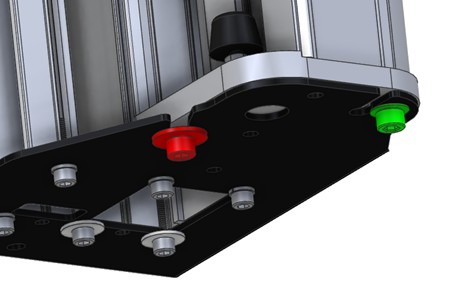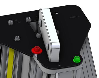 Repeat at the bottom of the machine but the red screw does not have to be removed, just loosened enough for the washer to be clear of the black steel plate.