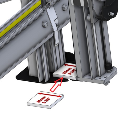 The cutter bar should now twist to reveal the underside of the clamp bar, the balance weight system will try to close the cutter bar so a spacer made from PVC Foamboard or a similar rigid board cut to 85mm – 3 3/8” wide is used to hold it open.