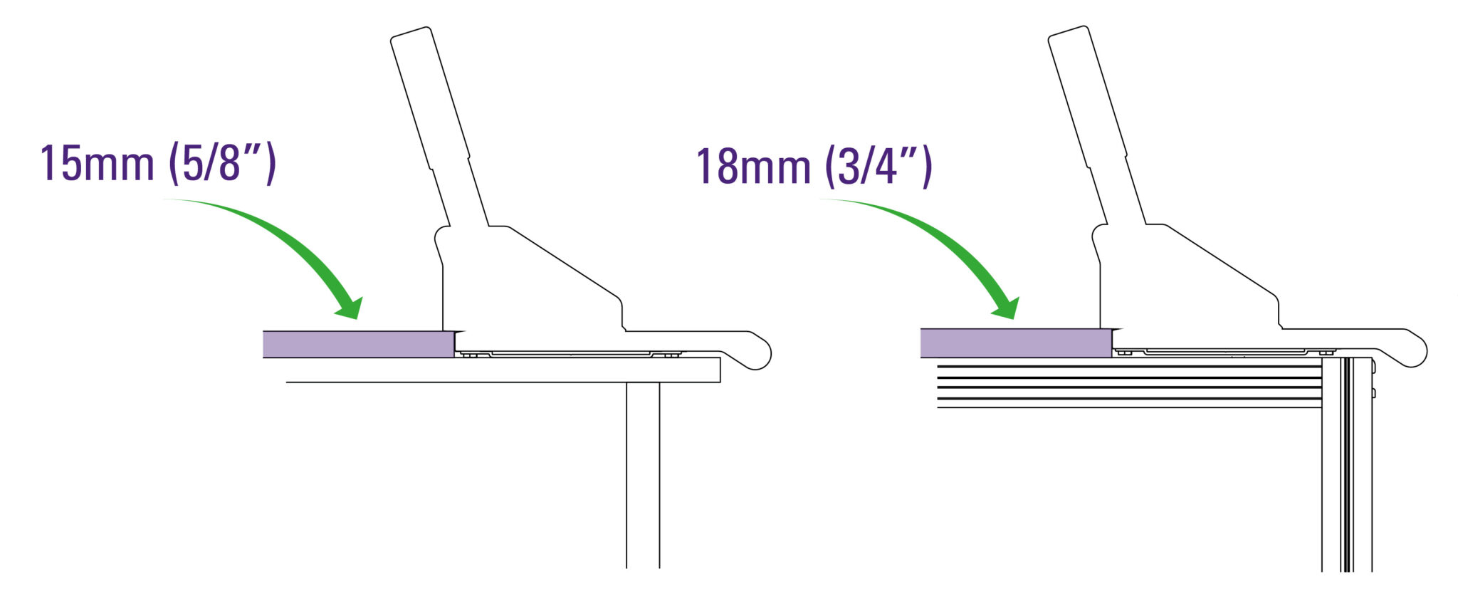 When fitting to a SmartFold Bench, the 18mm (¾”) thick bench worktop should now be installed.