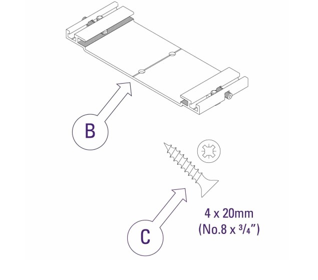 In this section you will need base brackets (part B) and short posi head screws (part C).