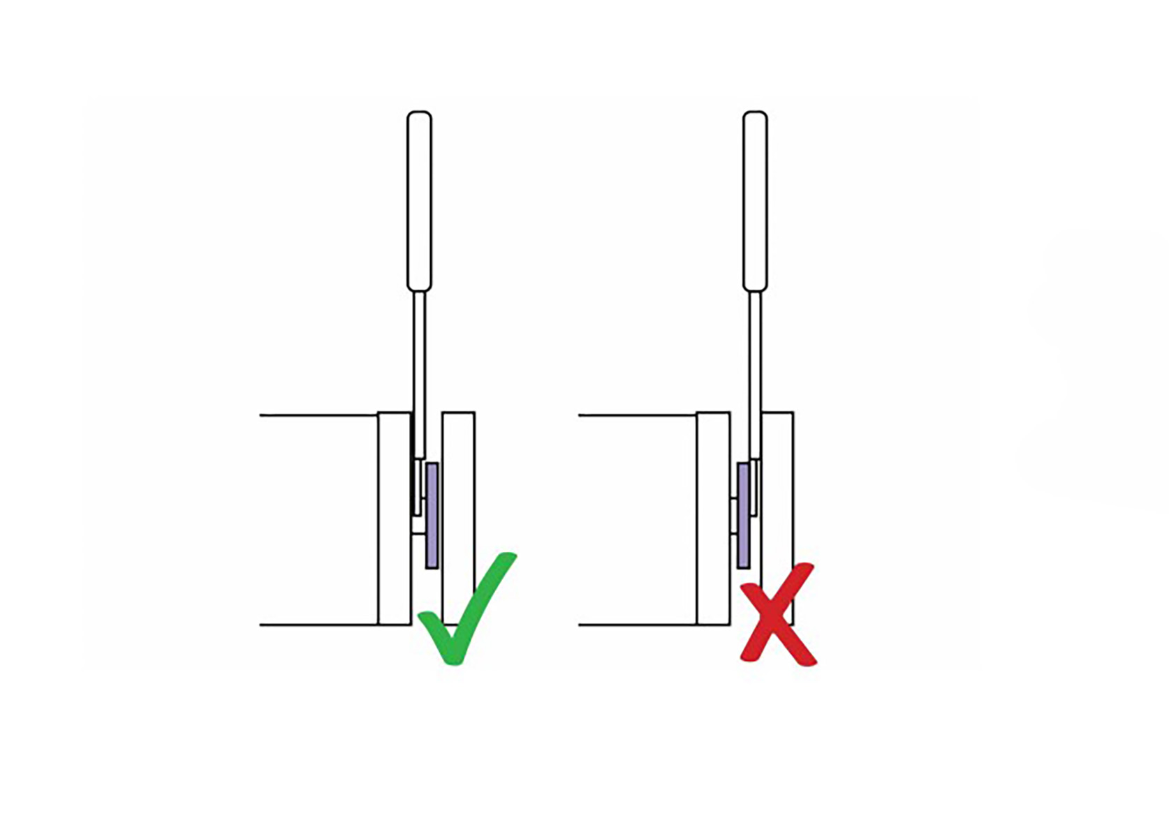 TIP: You can use the 3mm Allen key to move the steel plate within the opening if you are struggling to insert the handle.