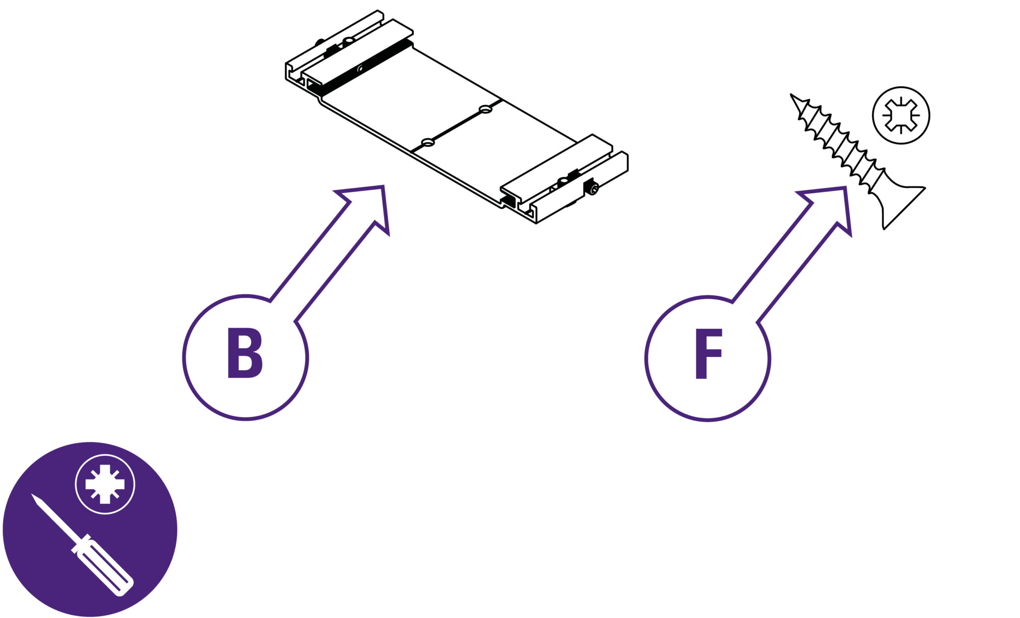 In this section you will need base brackets (part B) and short socket head screws (part * – delivered with the SmartFold Bench).