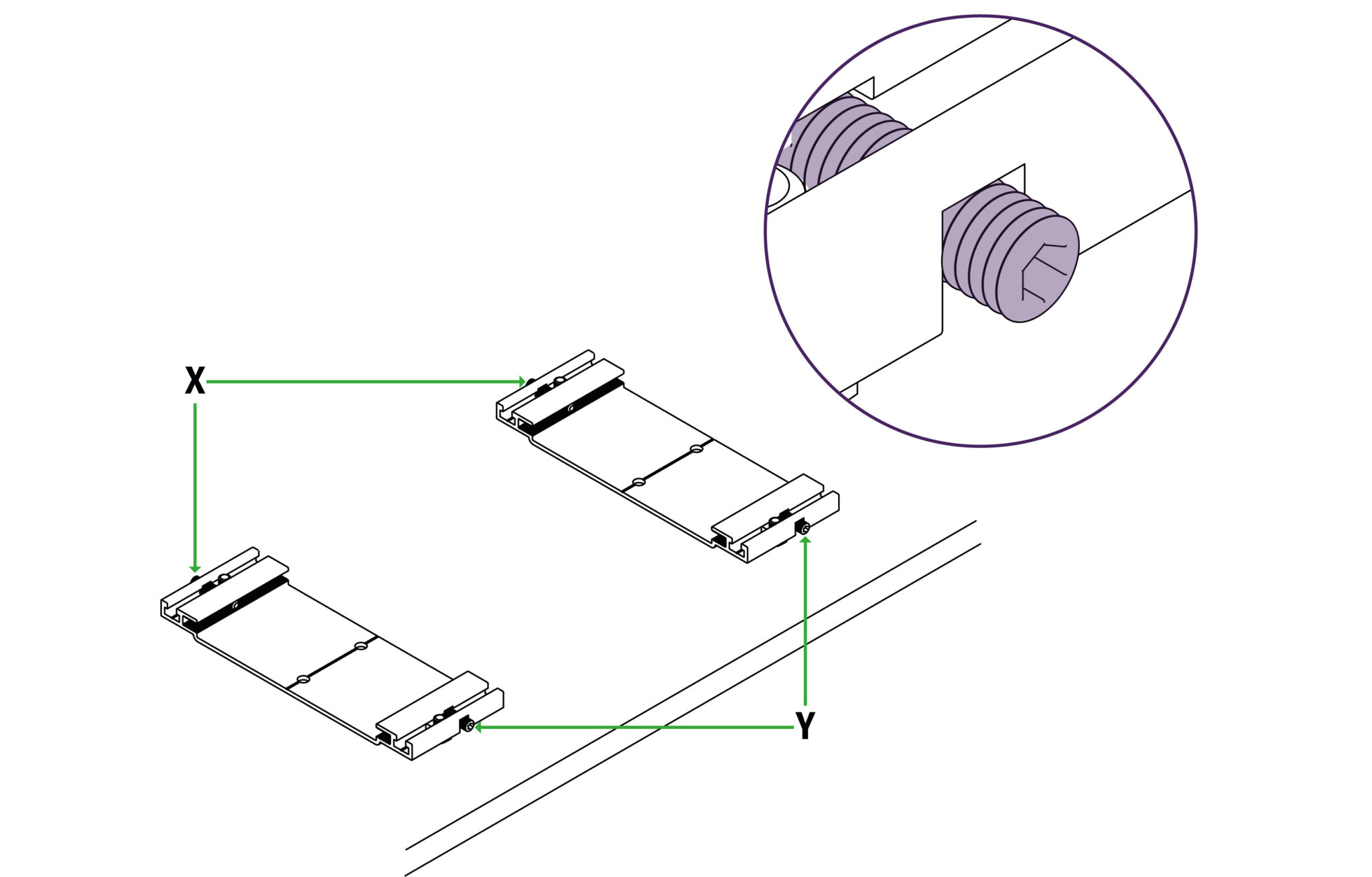 The base brackets have 2 grub screws each located at the front and the back (see ‘ x’ and ‘ y’).