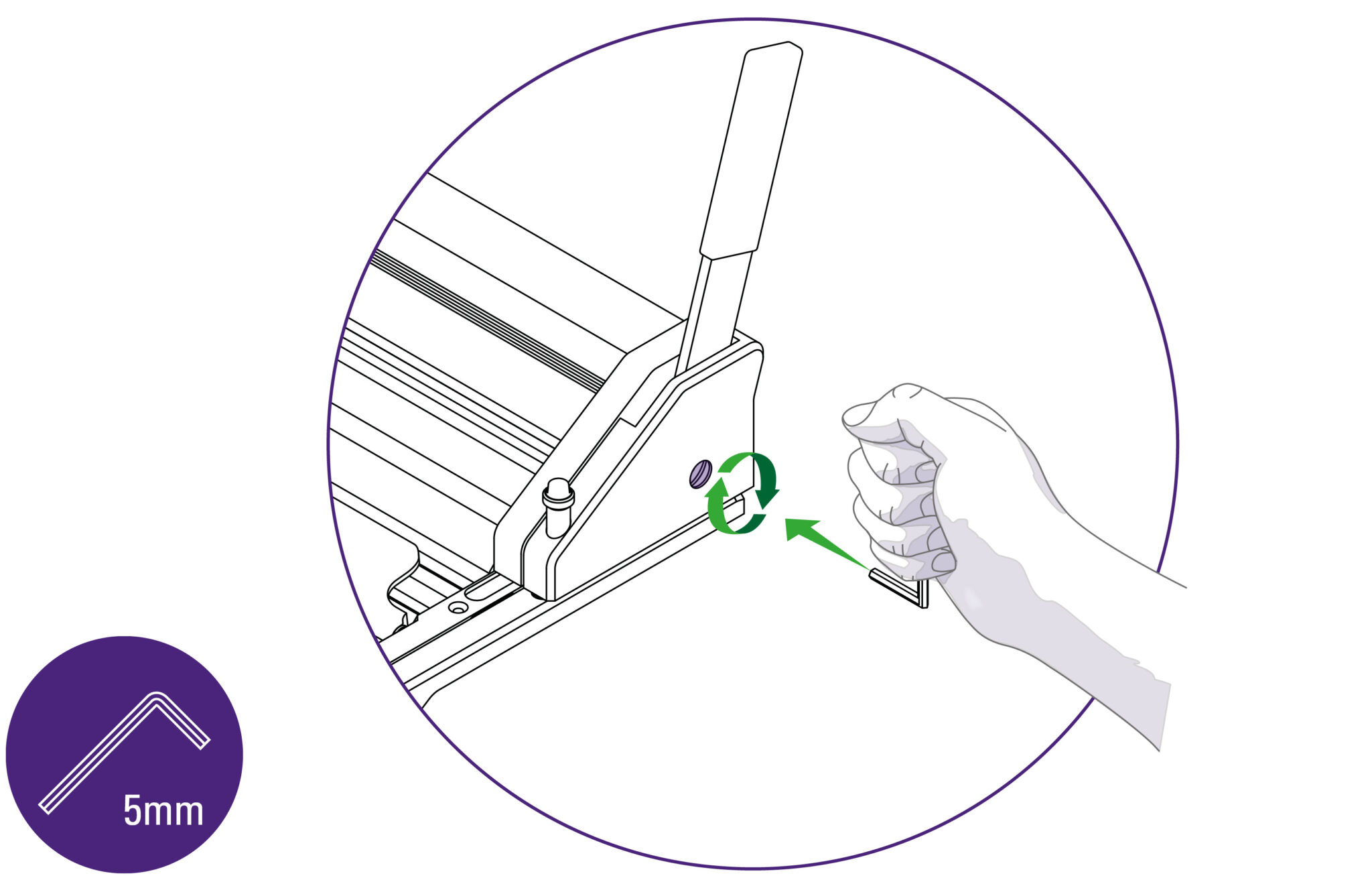 In those areas that the paper is not clamped, use the 10mm spanner/wrench to adjust the hex screws underneath the adjacent base brackets. There are two adjustment screws on each base bracket and they must both be adjusted by the same amount. Turn the hex screw just enough to correct the clamping in that area.