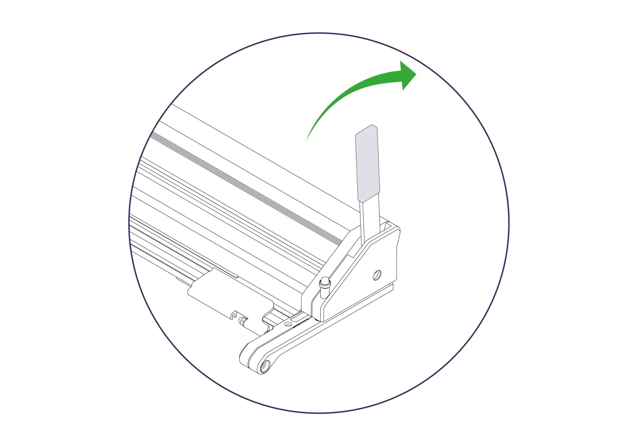 When fully aligned use the lever to lower the cutter bar onto the material and clamp it in position ready for cutting. Further cutting information is given in the sections under relevant tool heads.