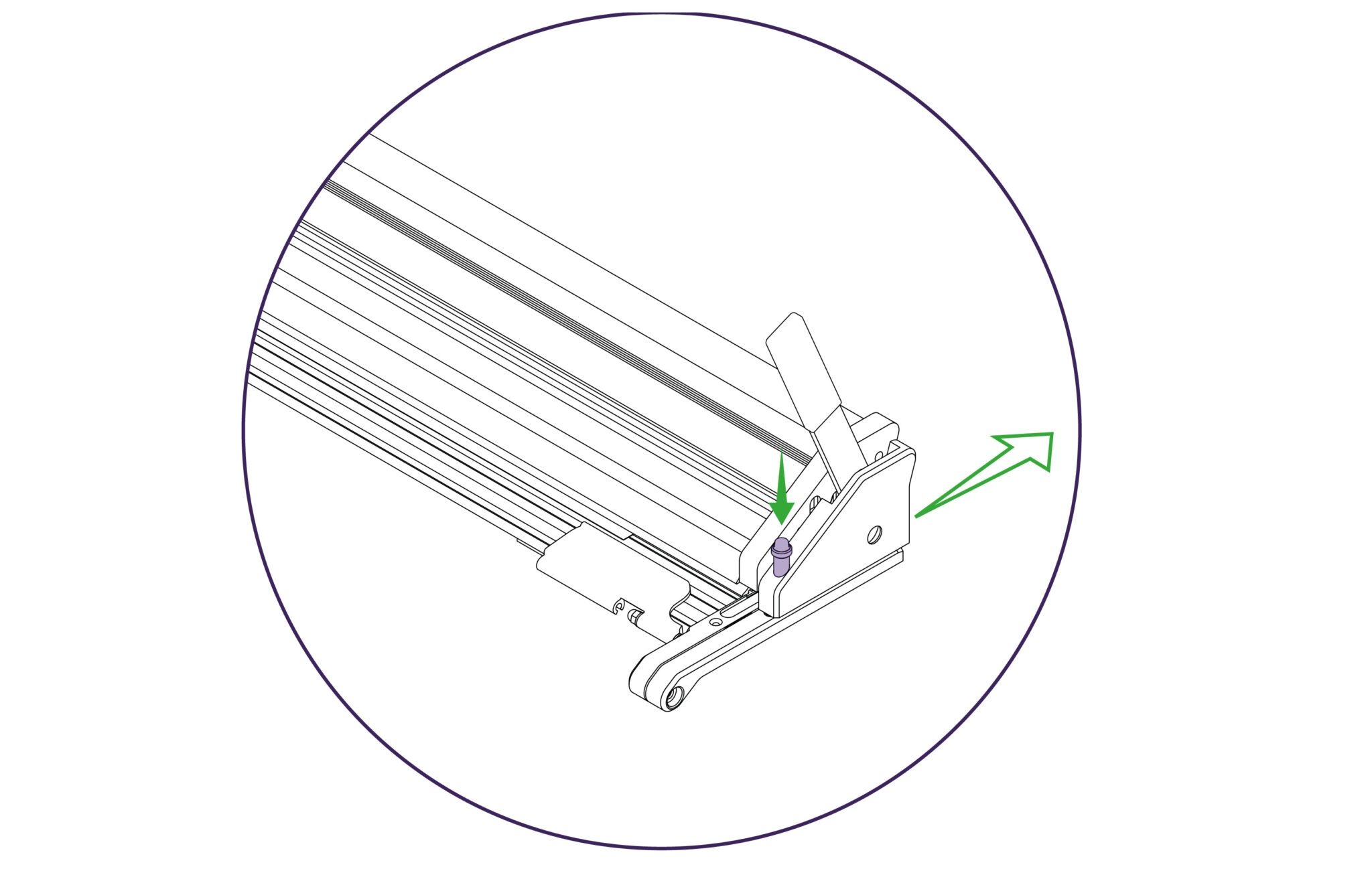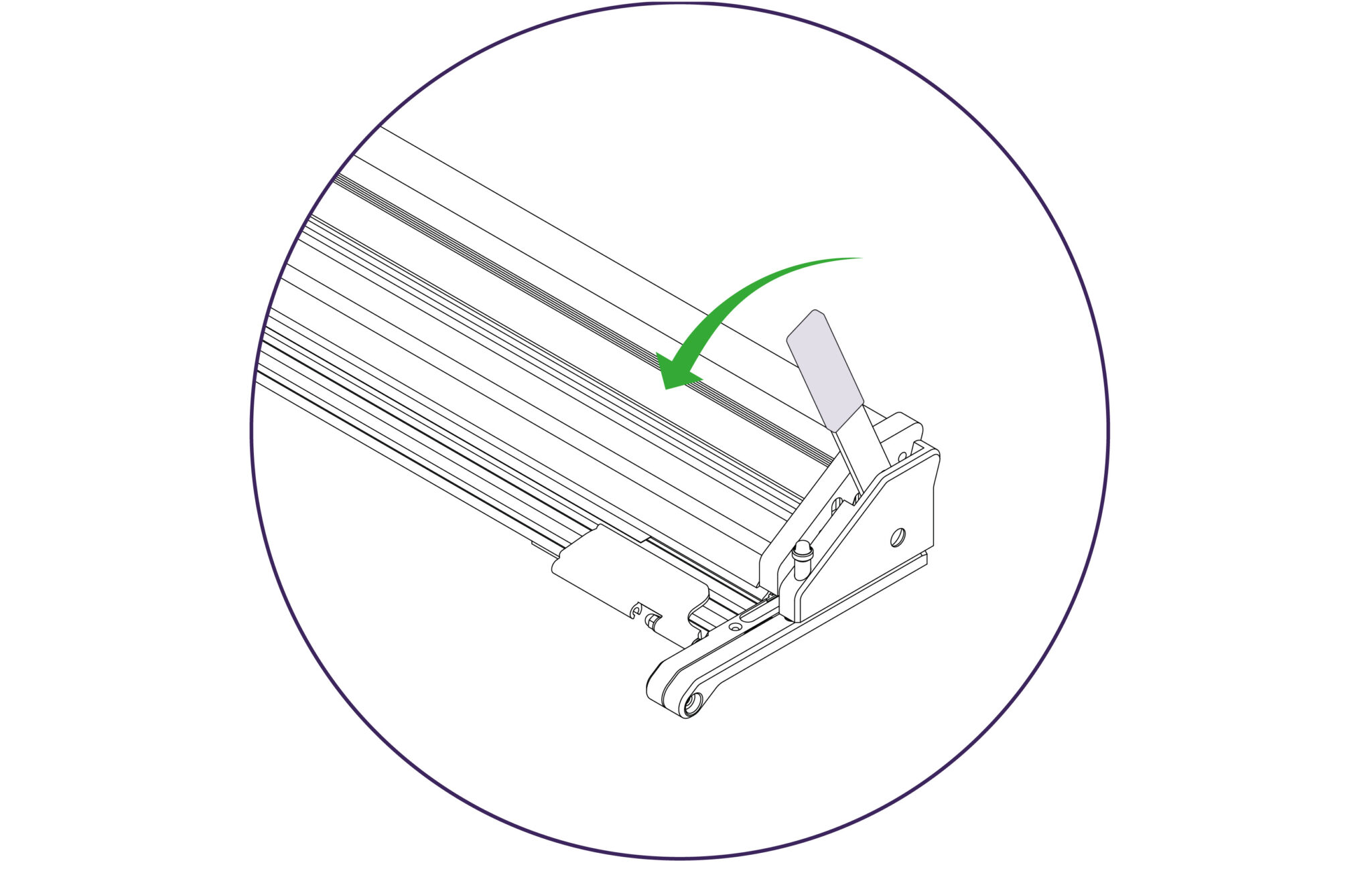 The cutting head can be pulled or pushed to cut the material. Load and align the material to be cut as described in the ‘clamping material’ section (see how to align and clamp the material >), press down the chosen blade holder whilst pushing/pulling the cutting head along the cutter bar.