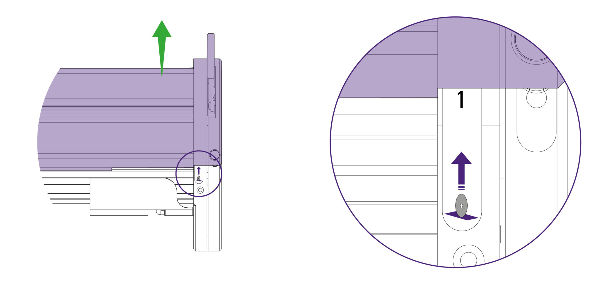 There are four cutting positions on the strip numbered 1 to 4, align the edge of the aluminium end block approximately so the number 1 on the label is seen, release the button and move the top section backwards and forwards slowly until the button clicks into place. Repeat these steps on the other side of the unit.